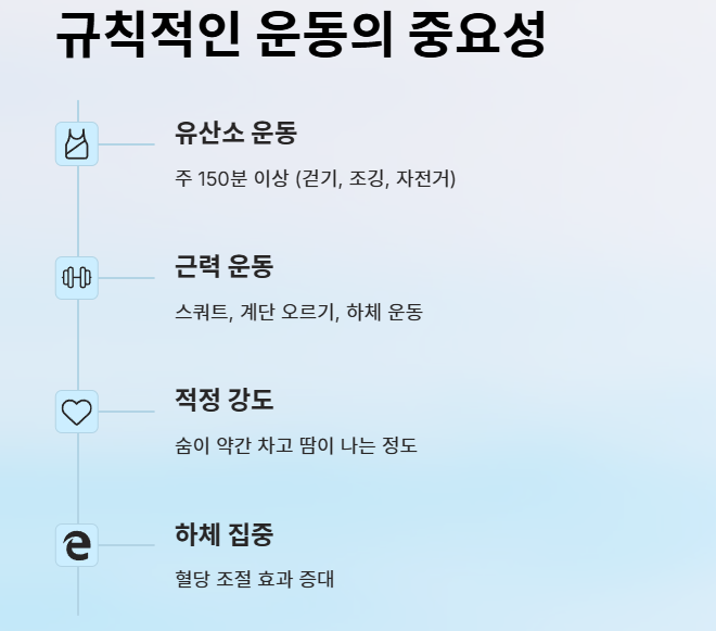 ✔ 운동은 유산소 + 근력 운동 병행 (주 150분 이상)