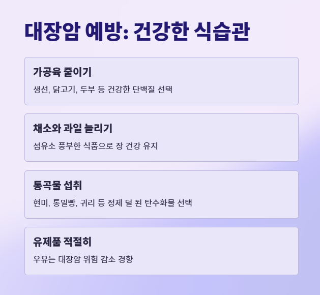 ✅ 식습관과 운동 습관을 개선하여 대장암 위험을 낮추세요.