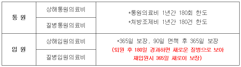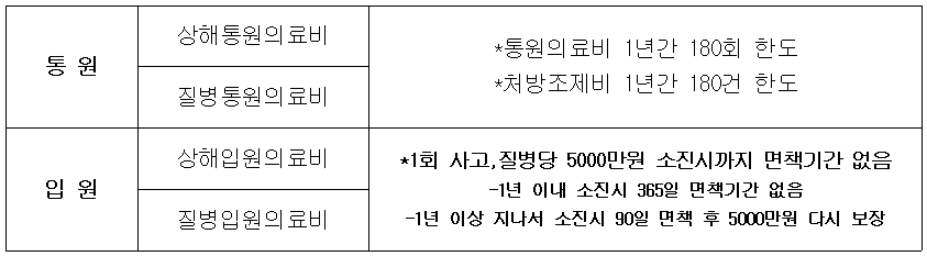 실손의료보험(2009년 7월 이전 가입)의 보상기간 및 한도