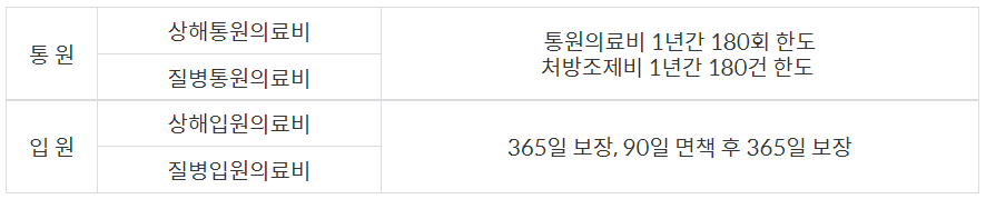 실손의료보험(2009년 7월 이전 가입)의 보상기간 및 한도